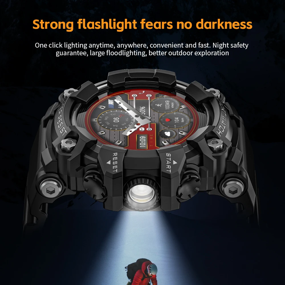 LOKMAT Rugged Sport Smart Watch ATTACK-GT Bluetooth Calls Colorful Waterproof Military Smartwatches with Flashlight for Phone