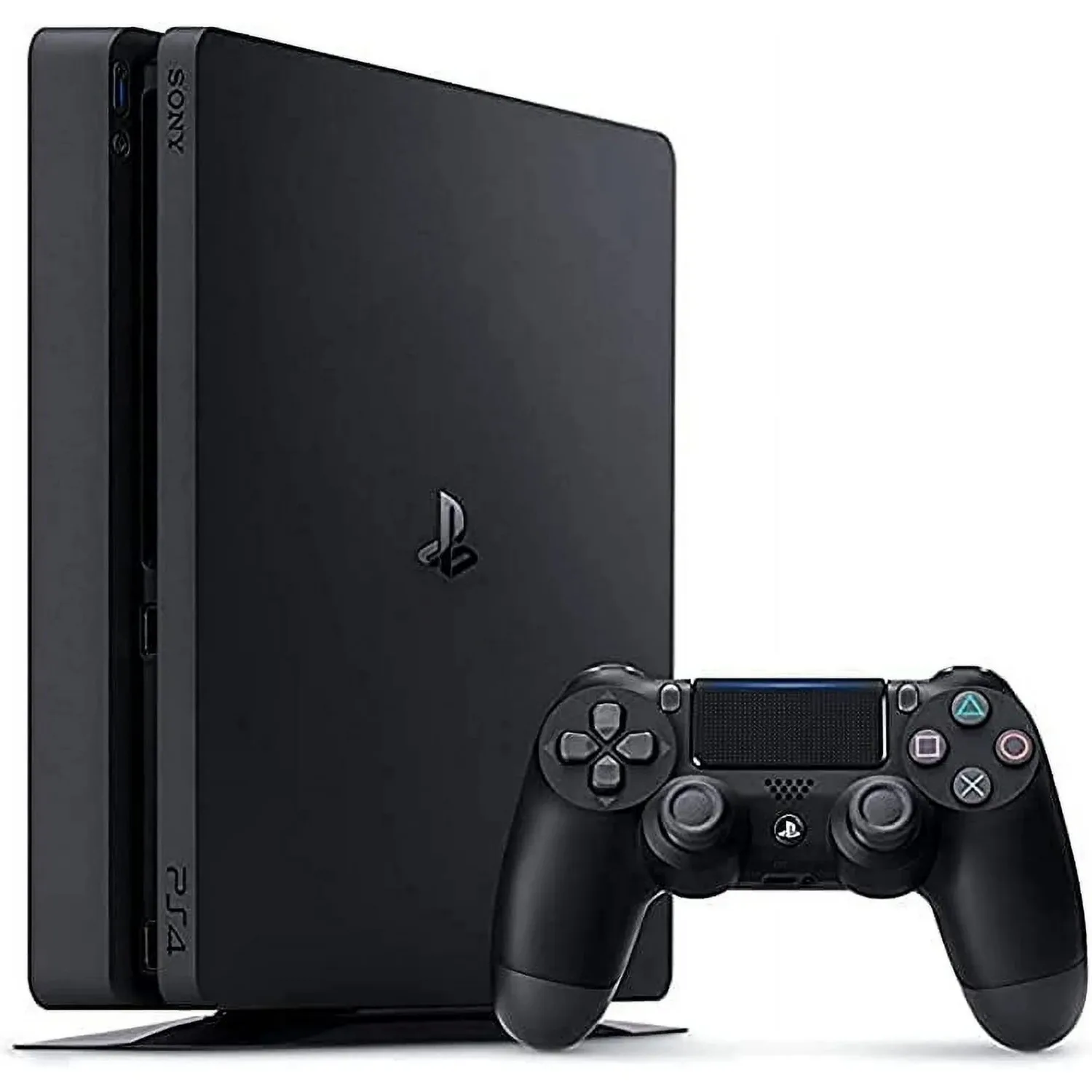 - This PS4 Slim gaming console features a slim design with a compact size, suitable for home entertainment spaces. Its matte black exterior is simple yet stylish, with a refined shape that makes it easy to place and carry.